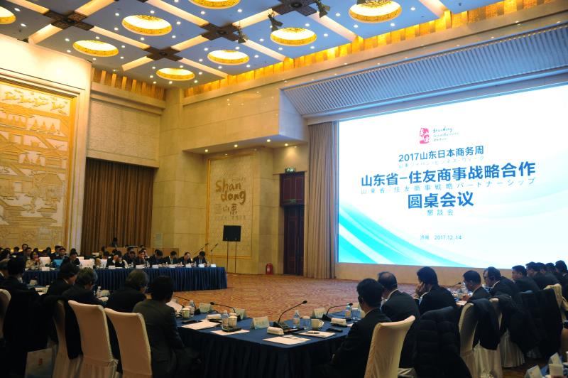 12月14日,“2017山东日本商务周”第三阶段活动在济南举行。副省长王随莲会见了来访的住友商事株式会社常务执行董事、东亚区总裁古场文博一行,出席“山东省-住友商事战略合作圆桌会议”并致辞,王随莲表示,山东与住友签署战略合作协议以来,双方交流日益密切,合作已经步入了快车道。“圆桌会议”是2017山东日本商务周的收官之作,也是专门与住友举行的战略合作对话会。希望住友积极参与山东新旧动能转换重大工程,聚焦重点产业开展合作,进一步丰富合作方式,共同参与“一带一路”倡议下的合作。我省部分市、开发区、企业与住友商事各事业部进行了对口洽谈,会上双方还签署了智能城市、医疗养老、现代农业、大宗商品贸易等4个重点合作项目。15日上午,举办“济南与住友商事高层对话会”,济南市市长王忠林与古场文博总裁一行对话协商合作,吕伟副厅长出席对话会并致辞,济南市与住友签署了医疗康养产业合作项目协议。省政府副秘书长魏华祥,省商务厅厅长佘春明、副厅长吕伟、省政府驻日本经贸代表处首席代表郭全涛等有关负责同志参加上述活动。